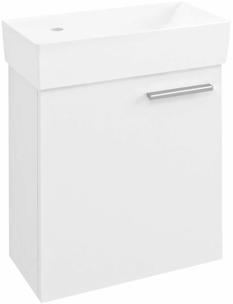 SAPHO Latus IX mosdótartó szekrény 44x50x22 cm, balos/jobbos, fehér LT090-3030 Garancia: 24 hónap Jótállás: 2 év Anyag: MDF/laminált Súly: 8 kg Fogantyúval ellátva Méret: 44x50x22 cm Szélesség: 440 mm Magasság: 500 mm Mélység: 220 mm Az ajtó jobb és bal irányba is felszerelhető Lassító zsanérral ellátva Falra szerelhető Szín: fehér A mosdó külön rendelhető, nem ta