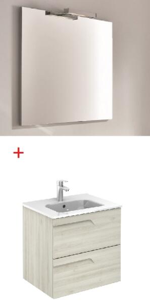 Royo Bannio Vitale 60 fürdőszobabútor szett, Kyra mosdóval, nature white 72962-K A termék öt színben rendelhető. Vitale két fiókos fali mosdószekrény A szett tartalma: Méretei: -Szélesség: 59,5 cm -Mélység: 45 cm -Magasság 56,5 cm Kyra mosdó Anyaga: kerámia
