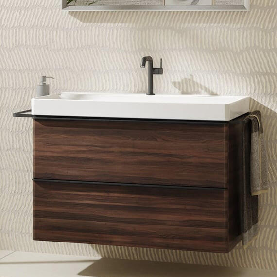 Hansgrohe Xelu Q Mosdószekrény mosdóhoz 980/475 két fiókkal, matt fekete fogantyú/sötét dió 54034670 iF product design award 2023: a világ legjobb formatervezéseivel büszkélkedhetnek. Nemzetközileg elismert minőségi pecsét, amelyet 1953 óta ítél oda az International Forum Design. Garancia: 5 év Telepítés: falra Alkalmazás: Xelu Q mosdóhoz Anyaga: közepes sűrűségű faro