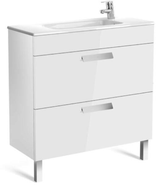 Roca Debba Unik Compact 800 alsószekrény két fiókkal és mosdóval, fehér A855907806 Szekrény méret: 80x36x72 cm 2 darab fékezett záródású fiók Kerámia mosdó 1 csaplyuk a jobb oldalon Fali kivitel Helytakarékos szifon Opcióként rendelhető: láb, tör&ou