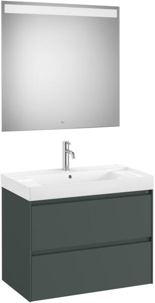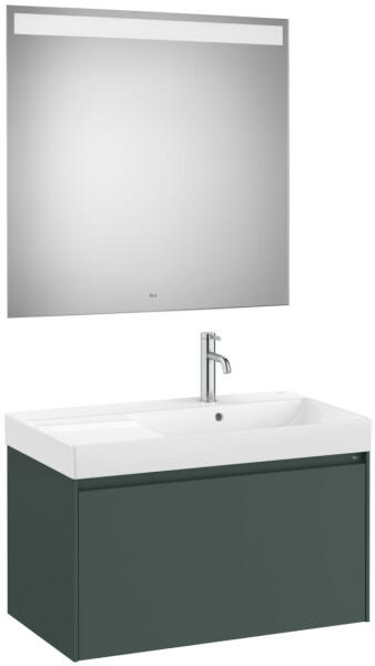 Méret: 800 x 460 x 505 mm 1 fiókos A327688000 mosdóval jobboldali medencével Tükör mérete: 800 x 800 x 22 mm Beépített led világítással