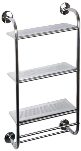 Fali polc 2 az 1-ben - dekoratív és praktikus A fali polcok nemcsak dizájntartozékok, hanem praktikusan is használhatók. Ideálisak minden modern fürdőszobába. Ezek a polcok kiváló minőségűek, és a dekoratív hatás mellett sok hasznos tárolóhelyet is biztosítanak a fürdőszobában. Három perforált fémlemezből készült polc alkalmas kozmetikai és higiéniai cikkek tárolá