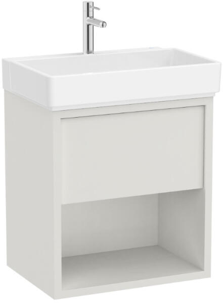 Roca Tura egy fiókos alsószekrény polccal 60x43x60 cm kerámia mosdóval, törtfehér A852025558 Alsószekrény tulajdonságai: Gar ancia: 2 év Telepítés: falra Anyag: MDF Magasság: 600 mm Magasság mosdóval: 710 mm Szélesség: 553 mm Szélesség mosdóval: 600 mm Mélység: 430 mm Kivitel: 1 fiók & 1 polc Fiók nyitás: push open Lágy záródás Szín: törtfehér Mosdó tulajdons