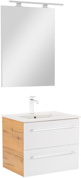 Méret: 60 x 50 x 46 cm|Szín: antik szürke|laminált MDF (15 mm)|becsapódásgátló|A szett részei: függesztett alsóbútor 2 fiókkal; kerámiamosdóval|A csaptelep nem tartozék.