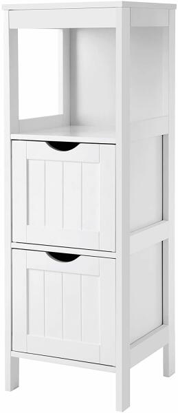 Egyszerű dizájn, halvány tónusok és letisztult vonalak jellemzik a skandináv stílust. A fehér BBC42WT állvány ráadásul a praktikus elvárásoknak is megfelel. Polcai elegendő tárolóhelyet biztosítanak a szükséges apróságokra. Ez a praktikus és egyben stílusos darab minden fürdőszobában jól mutat. Egy nyitott polc és két zárható fiók teszi sokoldalú segítséggé ezt