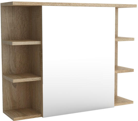 Adel tükrös fürdőszobai szekrény sonoma színben. Az Adel fürdőszobabútor termékcsalád modern fali bútorokból áll, amelyek nemcsak dekoratív funkciót töltenek be, hanem kapacitásuknak köszönhetően könnyedén tárolhatja fürdőszobai kellékeit és minden apróságot. A bútorok kiváló minőségű bútorlapokból készülnek, amelyek ellenállnak a karcolásnak és a nedvess