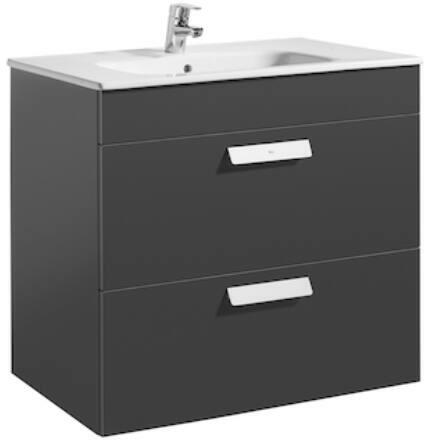 Roca Debba Unik Standard 800 alsószekrény két fiókkal és mosdóval, antracitszürke A855968153 Szekrény méret: 800x46x72 cm 2 darab fékezett záródású fiók Kerámia mosdó, egy csaplyukkal Fali kivitel Helytakarékos szifon Opcióként rendelhető: láb, tör&ou