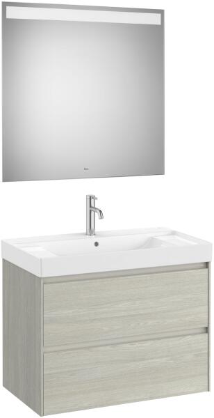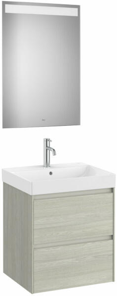 Mosdószekrény mosdóval|Méret: 550 x 460 x 645 mm|Szín: világos tölgy|2 fiókos|A327685000 mosdóval|Tükör mérete: 800 x 550 x 22 mm|Beépített led világítással