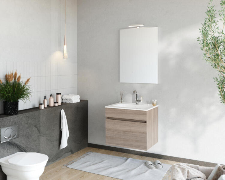 Bogota 60cm-es 1 fiókos fürdőszobaszekrény füstölt tölgy + mosdó Bogota 60cm-es 1 fiókos fürdőszobaszekrény füstölt tölgy + mosdó Falra rögzíthető laminált bútorlap fürdőszobabútor, beépített kerámia mosdóval. Csillapított záródású fiók, ABS élzárással, tükör LED lámpával. A csapot nem tartalmazza a szett! Méretek: Szélesség: 60cm Magasság: 53cm Mélys