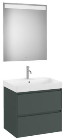 Roca Ona 2 fiókos mosdószekrény 65x46x64,5 cm kerámia mosdóval és tükör LED világítással, matt zöld A851705513 Ona termékcsalád egyszerű, mint a természet. Funkcionális anélkül, hogy hidegnek tűnne, tiszta esztétikája, amely követi a természeti környezet eredendő melegét. Azoknak készült, akik élvezik a csendes tájak erejét. Alsószekrény tulajdonságai: Gar ancia: