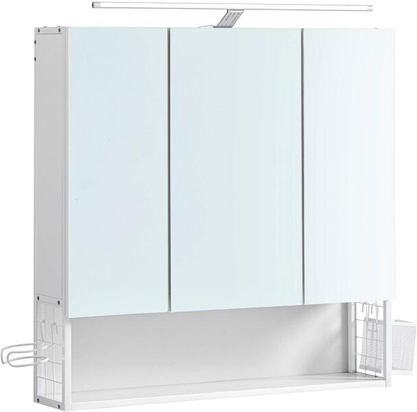 Fürdőszoba Tükörszekrény Világítással, Beépített kábel, Tükörszekrény, Fürdőszoba szekrény, Fali szekrény, Állítható magasságú polc, 3 ajtós, Modern, Fehér: [Egy stílusos szekrényt keresek] Megtaláltad! Ezzel a fürdőszobai szekrénnyel új külsőt adhat fürdőszobájának [Világítós szekrény] Ez a szekrény LED lámpával van felszerelve kábellel és kapcsolóv