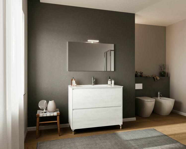 Lisbona 100cm-es 2 fiókos fürdőszobaszekrény szürke tölgy + mosdó Lisbona 100cm-es 2 fiókos fürdőszobaszekrény szürke tölgy + mosdó Laminált bútorlap fürdőszobabútor, krómozott állítható lábakkal. Beépített kerámia mosdókagylóval. Csillapított záródású fiókok. ABS élzárás, tükör LED lámpával. A csapot nem tartalmazza a szett! Méretek: Szélesség: 100cm M
