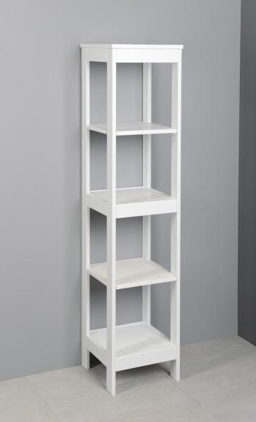 Aqualine Etide polcos állvány, magas, 36x156x36cm, matt fehér ETIDE - Álló, polcos fürdőszoba szekrény/állvány. Magas kivitel. Modern, szögletes vonalvezetés Jellemző i: Alapanyaga fehér színű MDF lap 5 db polccal rendelkezik, melyek tágas és egyszerű tárolási megoldást kínálnak 3 db polc rögzített (legfelső, középső és a legalsó), 2 db pedig állítható magasság