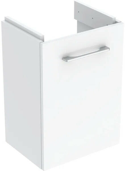 Geberit Selnova Square egy ajtós szekrény kézmosóhoz 38,6x55,7 cm, magasfényű fehér 502.734. 00.1 Tulajdonságok Szélesség: 38,6 cm Mélység: 31,2 cm Magasság: 55,7 cm Súly: 13 kg 45 cm-es kézmosóhoz Szín: magasfényű fehér Alapanyag: nagy tömörségű háromrétegű farostlemez Falra szerelhető Egy ajtóval Fogantyú a nyitáshoz Ajtó csillapítómechanizmussal Egy rögzített