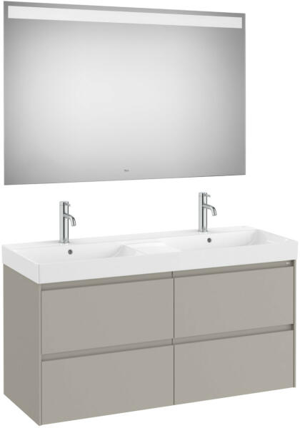 Négy fiókos mosdószekrény Pack dupla mosdóval, tükörrel|Méret: 1200 x 460 x 645 mm|Szín: matt szürke|4 fiókos|Az A32768B000 mosdóval együtt|A tükör mérete: 800 x 1200 x 22 mm|Beépített Led világítással