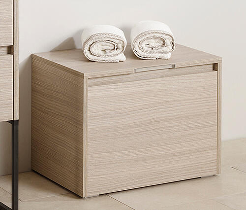 Méret: 60x45x40 cm(szélesség x magasság x mélység)|Szín: matt fehér|A szennyesruhák gyüjtése mellett lehetőséget nyújt arra, hogy ráüljön. | A felnyíló tető bárhol megállítható, megkönnyítve ezzel a ruhák ki és bepakolását, lecsukásakor pedig a beépíthető csillapítóknak köszönhetően halkan záródik. | Az 1 cm magas műanyag láb kiemeli a vizes padlótól. |