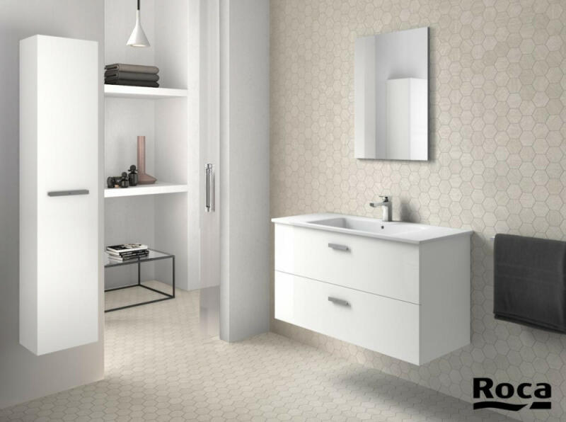 Roca Unik Victoria-N alsószekrény mosdóval 100 cm magasfényű fehér A855851806 Méret: 100,5x46x56,5 cm 2 fékezett záródású fiók Kerámia mosdó, csaplyukkal túlfolyóval Opcionálisan rendelhető: bútorláb, törölközőtartó Csaptelep és leeresztő nél