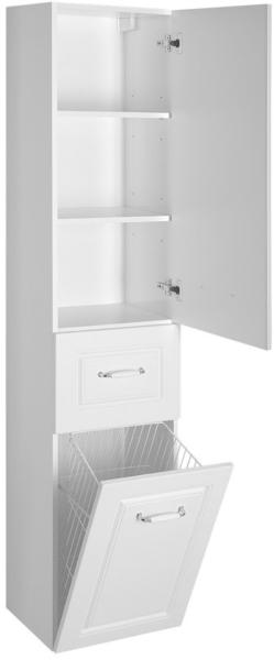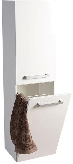 Aqualine Vega állószekrény, szennyestartóval, 40x150x31cm VEGA - Fürdőszobai állószekrény szennyestartóval (kosárral). Magas kivitel. Modern, szögletes vonalvezetés. Jellemzői: Alapanyaga selyemfényű fehér színű MDF lap Felső része 2 db polccal rendelkezik, melyek praktikus és egyszerű tárolási megoldást kínálnak Az ajtók fékezős kivetőpántokkal vannak felszerelve,