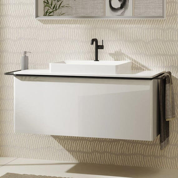 Hansgrohe Xelu Q Konzolos mosdószekrény 1180/550 fiókkal, ráültetett mosdótálakhoz, matt fekete fogantyú/magasfényű fehér 54062670 iF product design award 2023: a világ legjobb formatervezéseivel büszkélkedhetnek. Nemzetközileg elismert minőségi pecsét, amelyet 1953 óta ítél oda az International Forum Design. Garancia: 5 év Telepítés: falra Alkalmazás: pultlap, pultra ül