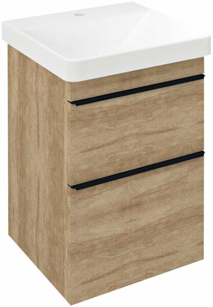 Cersanit Moduo fiókos mosdószekrény 50x40 kerámia mosdóval, lapraszerelt, matt antracit S801-471-DSM Mosdószekré ny Garancia: 2 év Anyag: MDF Felület: lakkozott Súly: 26 kg Telepítés: falra Szélesség: 49,4 cm Mélység: 39,7 cm Magasság: 57 cm Szifonkivágás nélkül Két kihúzható fiókkal Fiókrendszer: Soft-Close (lágyan záródó) Rejtett fogantyúk (mart) Könnyen összesze
