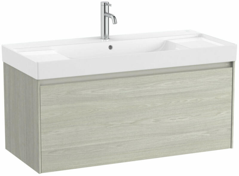 Roca Unik Victoria-N alsószekrény mosdóval 100 cm nyír A855851422 Méret: 100,5x46x56,5 cm 2 fékezett záródású fiók Kerámia mosdó, csaplyukkal túlfolyóval Opcionálisan rendelhető: bútorláb, törölközőtartó Csaptelep és leeresztő nélkül