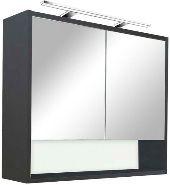 Luna 80 felső tükrös szekrény, antracit Termékleírás Bút or mérete80X20X67 cmKivitel FüggesztettSzínAntracitGarancia1 év A Luna 80 felső tükrös szekrény egyedivé varázsolja a fürdőszobádat! A fürdőszoba bútor tágas pakoló résszel rendelkezik ahol kényelmesen elférnek afürdőszobai pipere eszközök. A szekrényben 2 polc található. Kompakt kialakítása miatt kisebb