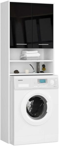 FÜRDŐSZOBA TALAPZAT A MOSÓGÉP FELETT 16 mm-es laminált lapból készült, kopásálló. -1 ABS szegéllyel borított élek Korpusz - fehér Frontok - Fekete fényes Méretek: Hosszúság - 64cm Magasság - 180cm Mélység - 30cm- A szekrény kiváló minőségű kronospan 16mm-es laminált lemezből készült. A lemez vastagsága 16mm - Az ajtó belsejében 2 polc található - A megfelelő v