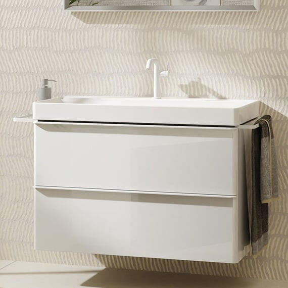 Hansgrohe Xelu Q Mosdószekrény mosdóhoz 980/475 két fiókkal, matt fehér fogantyú/magasfényű fehér 54031700 iF product design award 2023: a világ legjobb formatervezéseivel büszkélkedhetnek. Nemzetközileg elismert minőségi pecsét, amelyet 1953 óta ítél oda az International Forum Design. Garancia: 5 év Telepítés: falra Alkalmazás: Xelu Q mosdóhoz Anyaga: közepes sűrűség