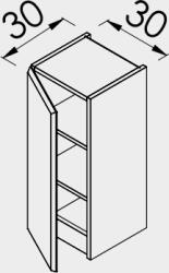 Fali rögzítéssel|1 ajtós balos vagy jobbos nyitással|Lábbal nem kérhető|Korpusz és front: Vákuumpréselt MDF front és oldalak, laminált lapok|Méret: 30x70x30|Mérsékelten vízálló|Összeszerelve szállítjuk|A kiválasztott színt a megjegyzésben kell feltüntetni|Színválaszték: magasfényű fehér, szupermatt fehér, lágy krém matt, világosszürke matt (kifutó szín), kős