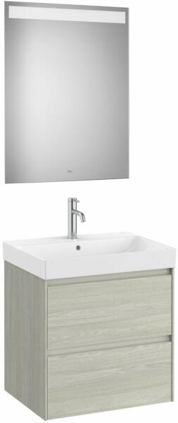Mosdószekrény mosdóval|Mosdószekrény:|Méret: 600 x 460 x 645 mm|Szín: világos tölgy|2 fiókos|A327686000 mosdóval|Tükör mérete: 800 x 600 x 22 mm|Beépített led világítással