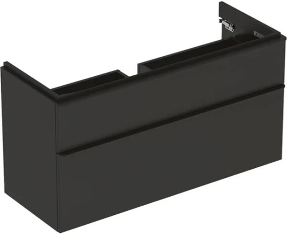 Geberit Smyle Square alsó szekrény mosdóhoz fiókkal 118,4x47 cm, matt lakkozott láva 500.355. JK. 1 Alapanyag: nagy tömörségű háromrétegű farostlemez Falra szerelhető Méret: 118,4x61,7x47 cm Szélesség: 118,4 cm Két fiókkal Fiók behúzósínnel Fogantyú a nyitáshoz Fém fiókkeret Nedvességtűrő Szín: láva / magasfényű bevonat Fogantyú szín: láva / matt porbevonatos Al