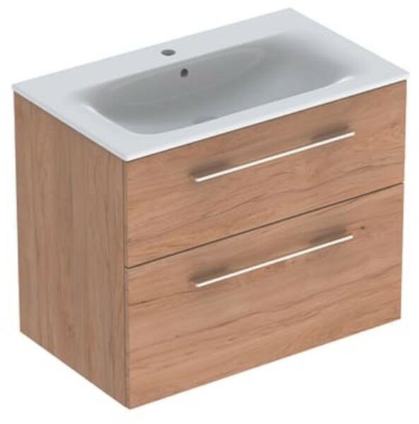Geberit Selnova Square 2 fiókos mosdószekrény 80 cm, keskeny peremű mosdóval, világos hikoridió 501.243. 00.1 Tulajdonságok Szín: világos hikoridió Méretek: 80x65,2x50,2 cm Szélesség: 80 cm Alapanyag: szaniter kerámia Csapfurattal Túlfolyóval Falra szerelhető Keskeny perem Két fiókkal Fogantyú a nyitáshoz Fiók behúzósínnel Nagy tömörségű, háromrétegű farostlemezbő