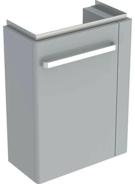 Geberit Selnova Comfort alsó szekrény kézmosóhoz 50 cm, jobb oldali törölközőtartó, rövidített kivitel, világosszürke 501.497. 00.1 Tulajdonságok Méretek: 44,8x60,4x25,2 cm Magasság: 60,4 cm Test: világosszürke/matt bevonat Előlap: világosszürke/fényezett, erősen csillogó Alapanyag: nagy tömörségű háromrétegű farostlemez Ajtó: sarokpánt bal oldalon Falra szerelhet
