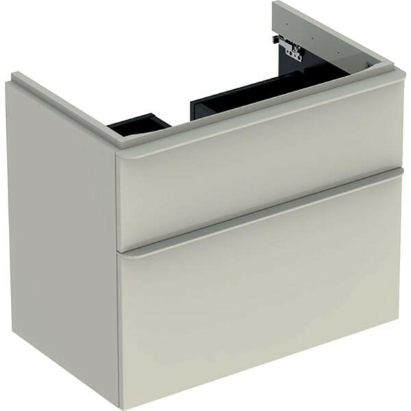 Geberit Smyle Square alsó szekrény mosdóhoz fiókkal 73,4x47 cm, magasfényű homokszürke 500.353. JL. 1 Alapanyag: nagy tömörségű háromrétegű farostlemez Falra szerelhető Méret: 73,4x61,7x47 cm Szélesség: 73,4 cm Két fiókkal Fiók behúzósínnel Fogantyú a nyitáshoz Fém fiókkeret Nedvességtűrő Szín: homokszürke / magasfényű bevonat Fogantyú szín: homokszürke/ matt