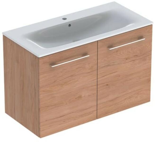 Geberit Selnova Square 2 ajtós mosdószekrény 100 cm, keskeny peremű mosdóval, világos hikoridió 501.263. 00.1 Tulajdonságok Szín: világos hikoridió Méretek: 100x65,2x50,2 cm Szélesség: 100 cm Alapanyag: szaniter kerámia Csapfurattal Túlfolyóval Falra szerelhető Keskeny perem Két ajtóval Egy rögzített polccal Fogantyú a nyitáshoz Ajtó csillapítómechanizmussal Nagy tömör