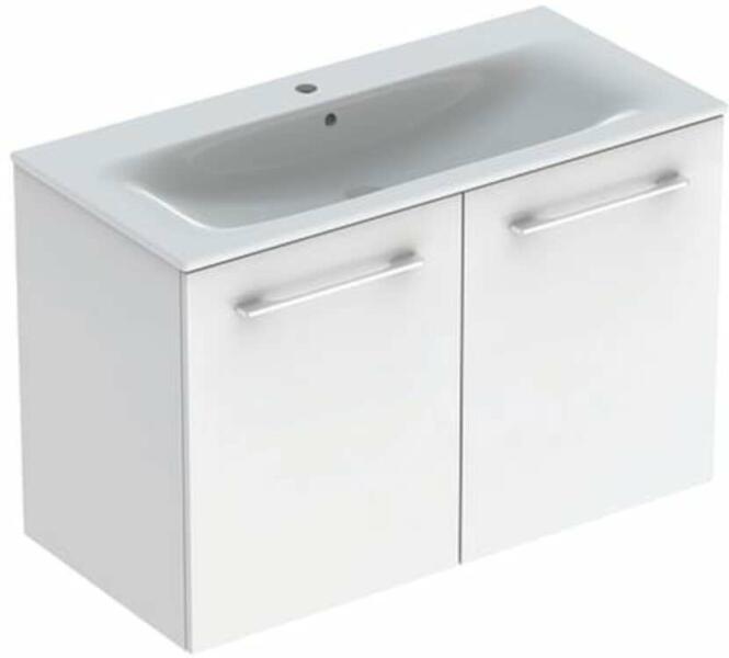 Geberit Selnova Square 2 ajtós mosdószekrény 100 cm, keskeny peremű mosdóval, magasfényű fehér 501.260. 00.1 Tulajdonságok Szín: magasfényű fehér Méretek: 100x65,2x50,2 cm Szélesség: 100 cm Alapanyag: szaniter kerámia Csapfurattal Túlfolyóval Falra szerelhető Keskeny perem Két ajtóval Egy rögzített polccal Fogantyú a nyitáshoz Ajtó csillapítómechanizmussal Nagy tömör