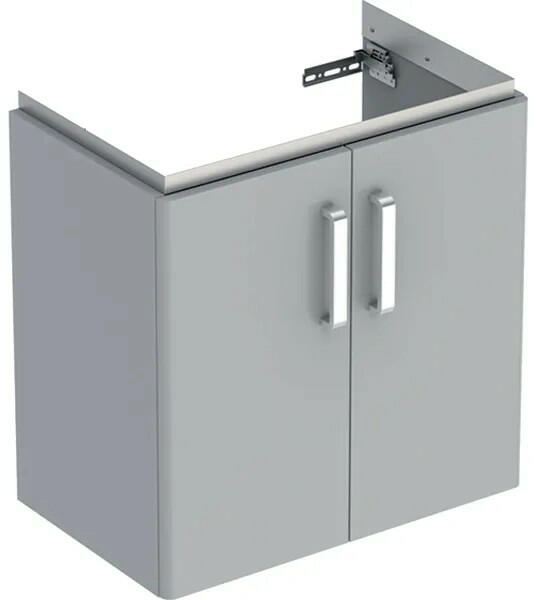 Geberit Selnova Compact 2 ajtós alsó szekrény mosdóhoz 59.7x39.7 cm, fényezett világosszürke 501.658. 42.1 Tulajdonságok Méretek: 59,7x60,5x39,7 cm Szélesség: 59,7 cm Test: világosszürke/matt bevonat Előlap: világosszürke/fényezett, erősen csillogó Alapanyag: nagy tömörségű háromrétegű farostlemez Falra szerelhető Két ajtóval Fogantyú a nyitáshoz Ajtó csillapítóme