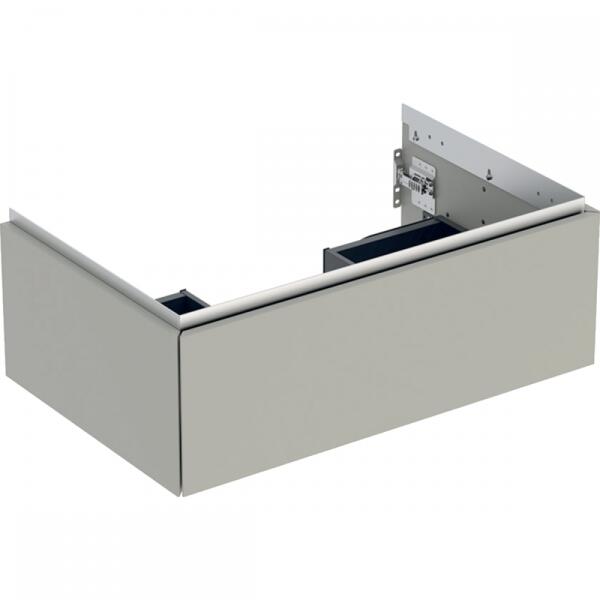 Geberit Acanto alsó szekrény mosdóhoz, egy fiókkal egy belső fiókkal rövidített kivitel 90 cm matt homokszürke/fényes homokszürke üveg (500.616. JL. 2) Tulajdonságok Falra szerelhető Egy fiókkal Egy belső fiókkal Fogantyú a nyitáshoz Fiók behúzósínnel Rövidített kivitel Nedvességtűrő Előlap farostlemezből üvegburkolattal Előszerelve szállított Műszak i adatok Ala