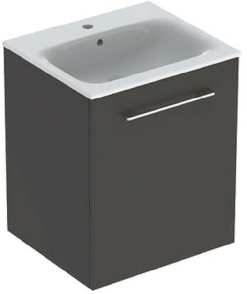 Geberit Selnova Square 1 ajtós mosdószekrény 55 cm keskeny peremű mosdóval, matt láva 501.249. 00.1 Tulajdonságok Mosdó anyaga: szaniter kerámia Szekrény anyaga: finom tűzálló anyag / nagy tömörségű, háromrétegű farostlemez Súly: 34 kg Méretek: 55x65,2x50,2 cm Szélesség: 55 cm 1 nyitott csaplyukkal középen Túlfolyóval Telepítés: falra szerelhető Keskeny perem Egy ajt