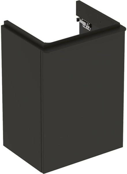 Geberit Smyle Square alsó szekrény kézmosóhoz ajtóval 44,2x35,6 cm, matt lakkozott láva 500.351. JK. 1 Alapanyag: nagy tömörségű háromrétegű farostlemez Méret: 44,2x61,7x35,6 cm Falra szerelhető Egy ajtóval Balra nyíló Fogantyú a nyitáshoz Ajtó csillapítómechanizmussal Nedv ességtűrő Egy áthelyezhető polccal Szín: láva / matt bevonat Fogantyú színe: láva / matt por