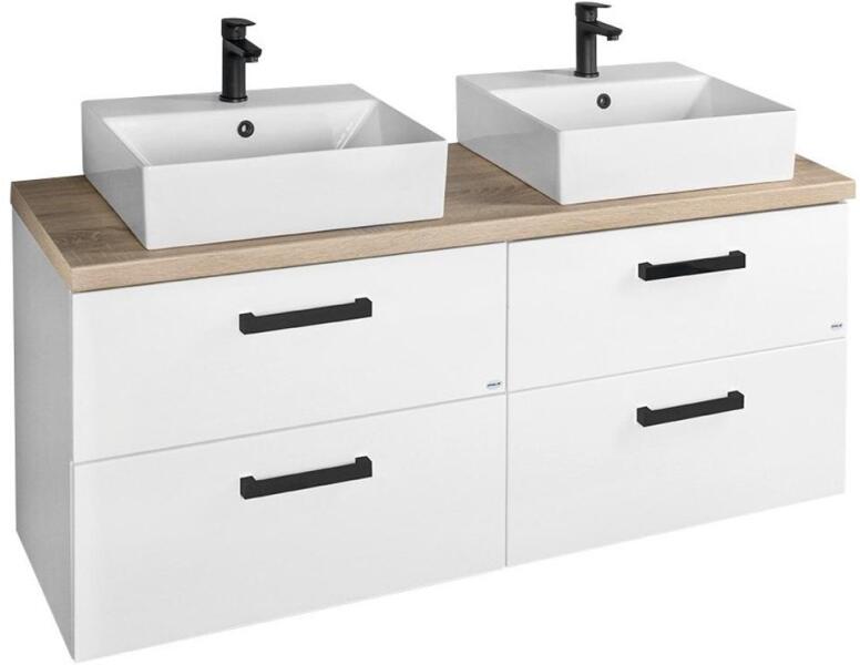 Aqualine Vega alsószekrény mosdóval 103,5x63,8x45 cm, csaptelep nélkül, fehér VG052-04 A szett tartalma: mosdópult 104x45 cm, Aqauline Sistema kerámiamosdó 50x42 cm, 2x Aqualine Vega alsószekrény 51,5x45x60 cm és Vega fekete fogantyúk 192 mm Garancia: 24 hónap Jótállás: 2 év Súly: 33,40 kg Anyag: MDF/laminált Telepítés: falra Méret: 103,5x63,8x45 cm Szín: fehér Magasság: