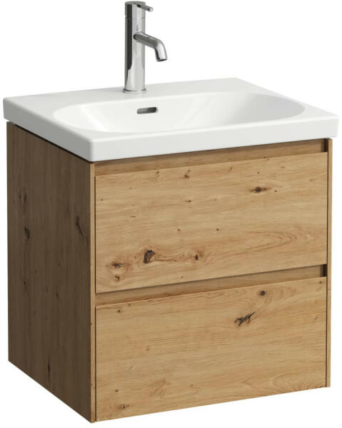 Laufen Lani tölgy színű alsószekrény 53,4x44,8x51,5cm, két fiókkal H4035221122671 Laufen Lua H8100820001041 mosdó variációihoz Telepítés: falra Súly: 23 kg Alapanyag: MDF 19 mm-es Szín: tölgy Felület: PVC fólia Méret 53,4x44,8x51,5cm Kivitel: dupla fiók Integrált fogantyúval, fékezett záródással (soft-close mechanizmus) Szerelőkészlette l A mosdó nem tartozék.
