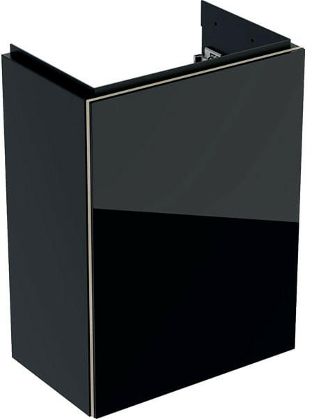Geberit Acanto alsó szekrény kézmosóhoz, egy ajtóval 40 cm matt fekete/fényes fekete üveg (500.607. 16.1)Tulajdonságok F alra szerelhető Egy ajtóval Push-to-open mechanizmus a nyitáshoz Ütközőoldal bal vagy jobb Nedvességtűrő Előlap farostlemezből üvegburkolattal Előszerelve szállított Műszak i adatok Alapanyag : Nagy tömörségű háromrétegű farostlemez Szállítási t