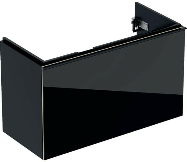 Geberit Acanto alsó szekrény mosdóhoz, egy fiókkal egy belső fiókkal rövidített kivitel 90 cm matt fekete/fényes fekete üveg (500.616. 16.1) Tulajdonságok Falra szerelhető Egy fiókkal Egy belső fiókkal Fogantyú a nyitáshoz Fiók behúzósínnel Rövidített kivitel Nedvességtűrő Előlap farostlemezből üvegburkolattal Előszerelve szállított Műszak i adatok Alapanyag : Nagy