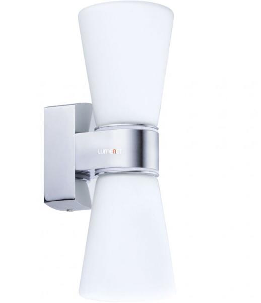 LED-es fali G9 2x2,5W 600lm króm/fehér IP44 Cailin Led fényforrással rendelkező termék, a beépített LED technológiának köszönhetően a legmodernebb világítástechnikát alkalmazva. A fényforrás olyan technológiával készült, amely a hagyományos fényforrásokhoz képest jelentős mértékben csökkenti az energiafelhasználást. A termék ellenáll a legfeljebb 1mm átmérőjű