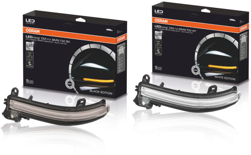 Az Osram LEDDMI BMW F20WT tükörbe építhető LED irányjelző sáv, a BMW autókba szerelt, tükörbe épített hagyományos jelző lámpák helyére jelentenek korszerű LED -es világítási megoldást. Az Új Osram LEDDMI BMW F20WT tükörbe építhető LED irányjelző sáv jól látható dinamikus futó fénnyel világít így magasabb esztétikai élményt nyújt, mint a standard változa