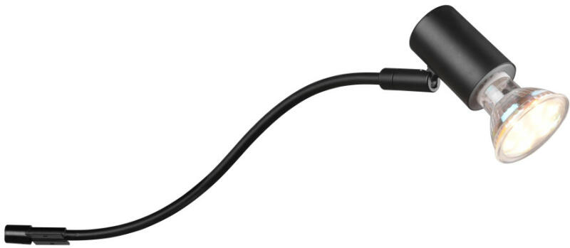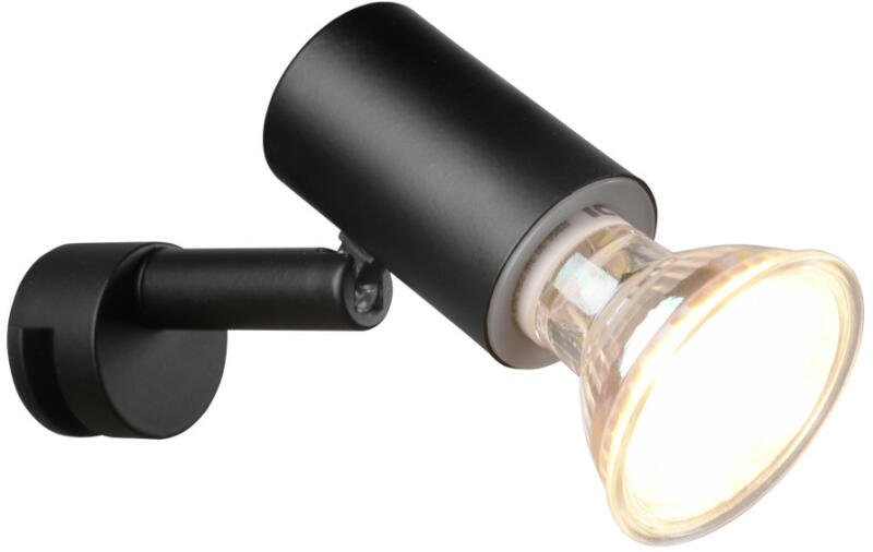 Tükörre szerelhető matt fekete színű fém fürdőszobai fali lámpa billenthető fejjel, GU10-es foglalattal, IP44-es védelemmel.