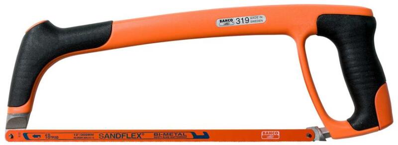 Egyedülálló professzionális fémfűrész keret. Tervezésének köszönhetően nagy lapfeszesség érhető el amely bizosítja a pontos, egyenes vágást. Az erős acél magot egy kényelmes műanyag bevonat borítja. A fűrészlap 55°-ban elfordítható. Az új Sandflex® 3906 bi-metál lap 24-es fogosztással kiváló vágást biztosít. Comfortable soft grip handles Steel tube core with pl
