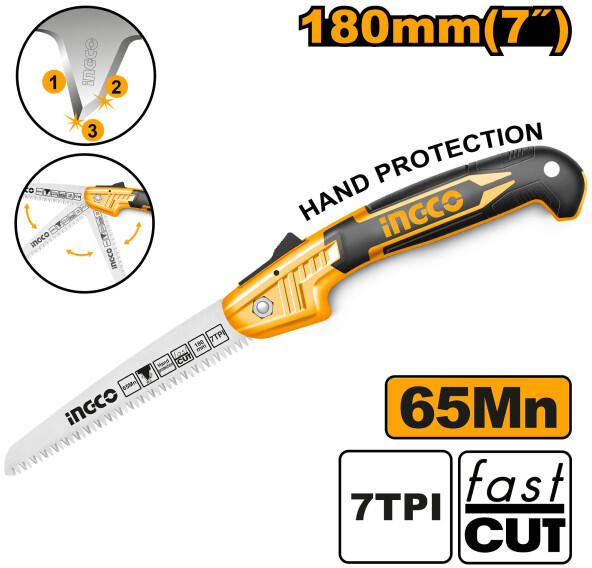Méret: 180 mm (7")Anyaga: 65MnFogosztás: 7TPI3 élű fogkialakításGyors vágásÖsszecsukható Szállítási terjedelem: 1 db ágfűrész, Bliszterben