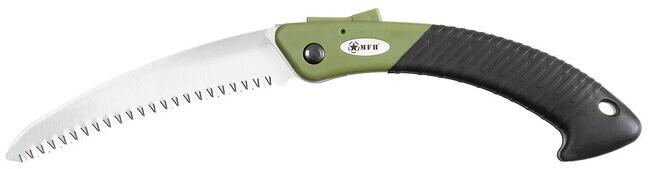 Összecsukható fűrész, OD zöld-fekete ívelt fűrészlap edzett szerszámacélból készültcsúszásmentes, gumibevonatú műanyag fogantyúa fűrészlap reteszelőgombjaszem a nyél végénTeljes hossz: kb. 37 cmFűrészlap: kb. 17 cmSúly: kb. 190 g